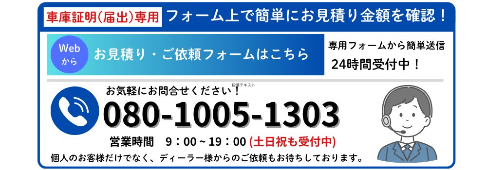 - 【車庫証明(届出)】簡易お見積り&お申込フォーム・お電話(080-1005-1303)・LINEにてご連絡ください。